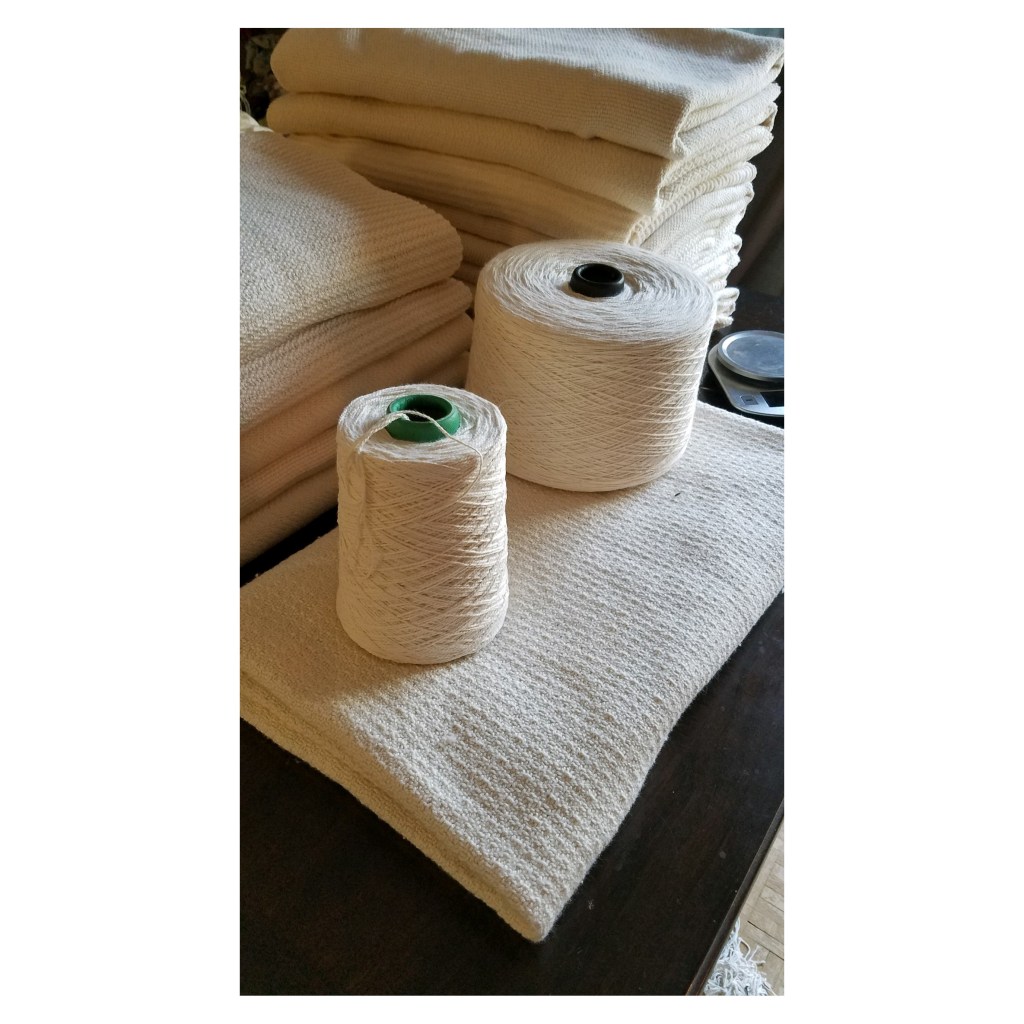 Approx. 2.5 lbs of natural cotton yarn is needed to create one loom woven throw.