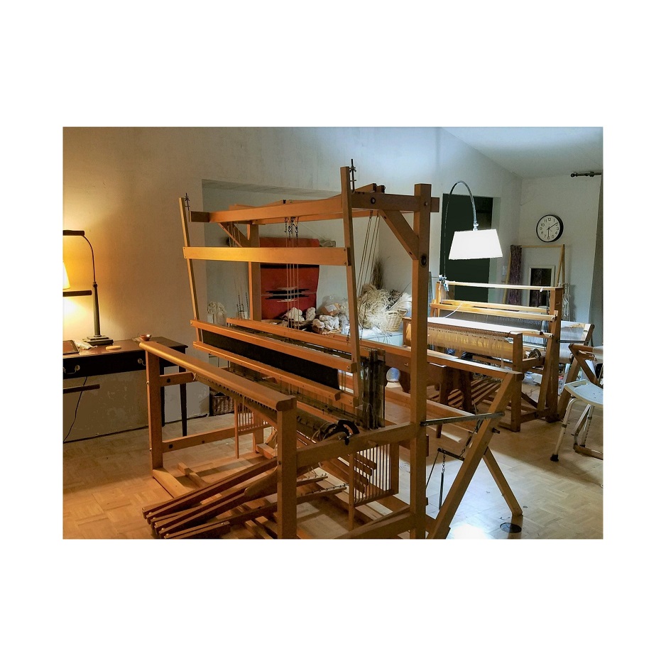 I buy my yarn in 3.5 lb cones. Just in yarn for the throws only, I try to keep approx. 21 cones of yarn on stock all the time. For all of my weaving’s, I have about 100 lb natural cotton yarn. For my one of a kind weaving about the same, but in fiber for spinning. Silk from Meghalaya, Belgium Linen, Wild Nettle from the Himalaya, Bast Fiber from Japan and personally handpick Organic Cotton from Lamasa, Texas