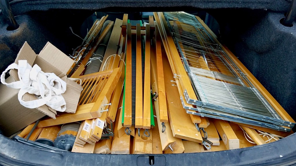 Today my journey has taking me to Seward, Nebraska. What you are seeing in the truck of my car, is a weaving loom that I have just purchase.
