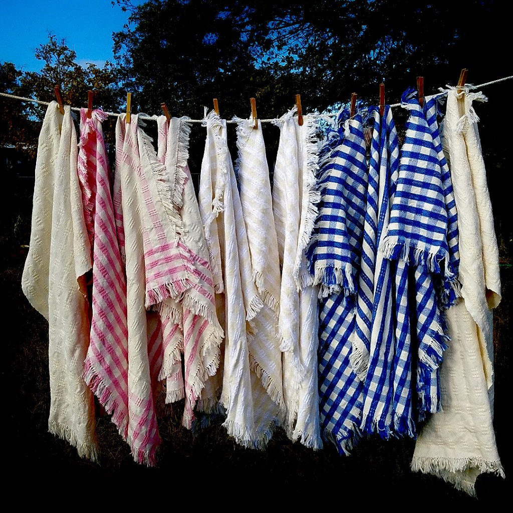 100% Natural Cotton Baby Blankets. Hand Tied Knotted Fringe.