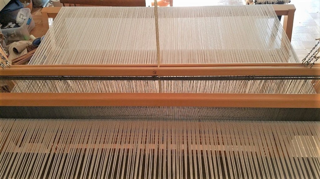 In the picture on the left, the two on the bottom are a light and heavy weight throws, cut of the loom. The two above them have been wet finished.