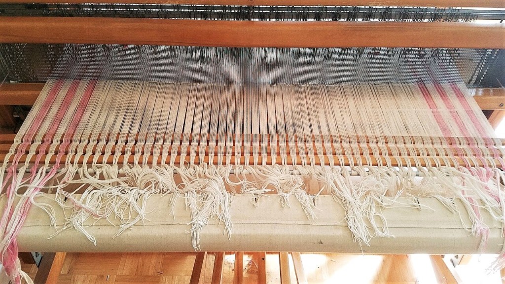 When I finish weaving a throw, I will cut it off the wooden loom.